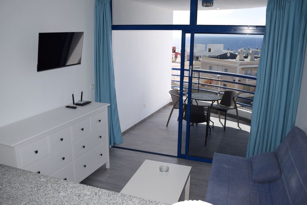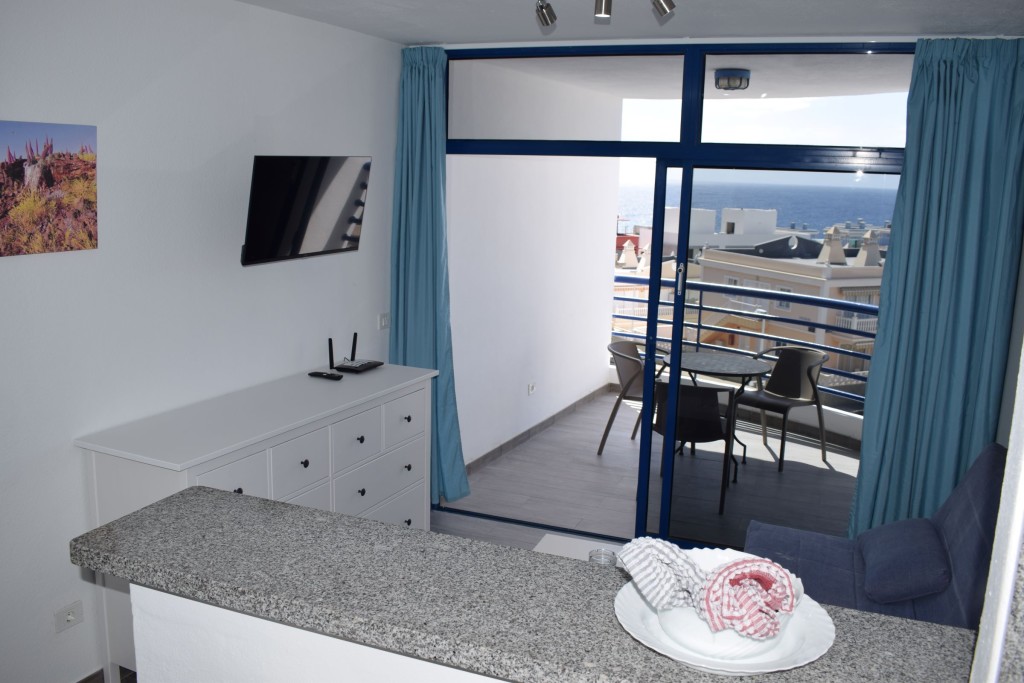 Die insgesamt 36 Einheiten können mit je 1-3 Personen (+ 1. Baby) belegt werden. Das Bad ist ausgestattet mit Duschwanne, Waschbecken, WC und individuellen Wasserboiler . Das Schlafzimmer verfügt über 2 Einzelbetten, Nachttisch und Schrank mit Mietsafe.Die Küche, im Wohnraum integriert verfügt über 2 Kochplatten, Kühlschrank, Geschirr etc und Esstisch mit Stühlen. Im Wohnraum befindet sich das Schlafsofa für die 3. Person. Die möblierten Balkone liegen süd-westlich und haben überwiegend Meerblick.